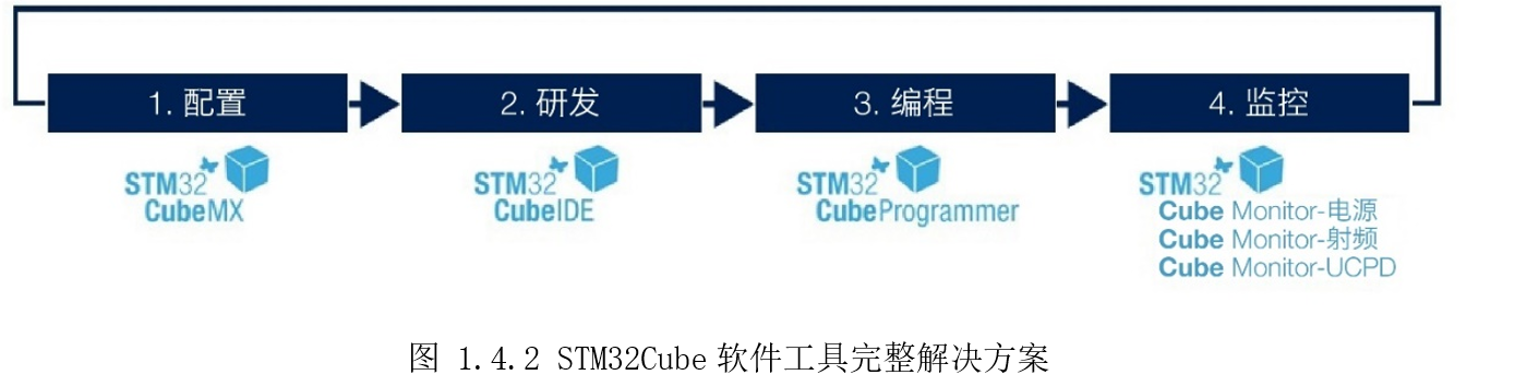 STM32Cube生态系统就是面向STM32系列芯片的完整软件解决方案。软件解决方案包含软件工具套件和嵌入式软件。