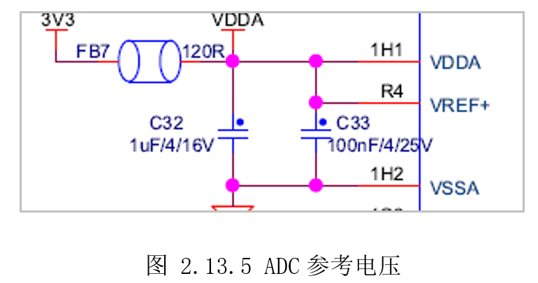 此外,ADC还涉及参考电压,查看核心板电路图可知,参考电压为3.3V,如所示。