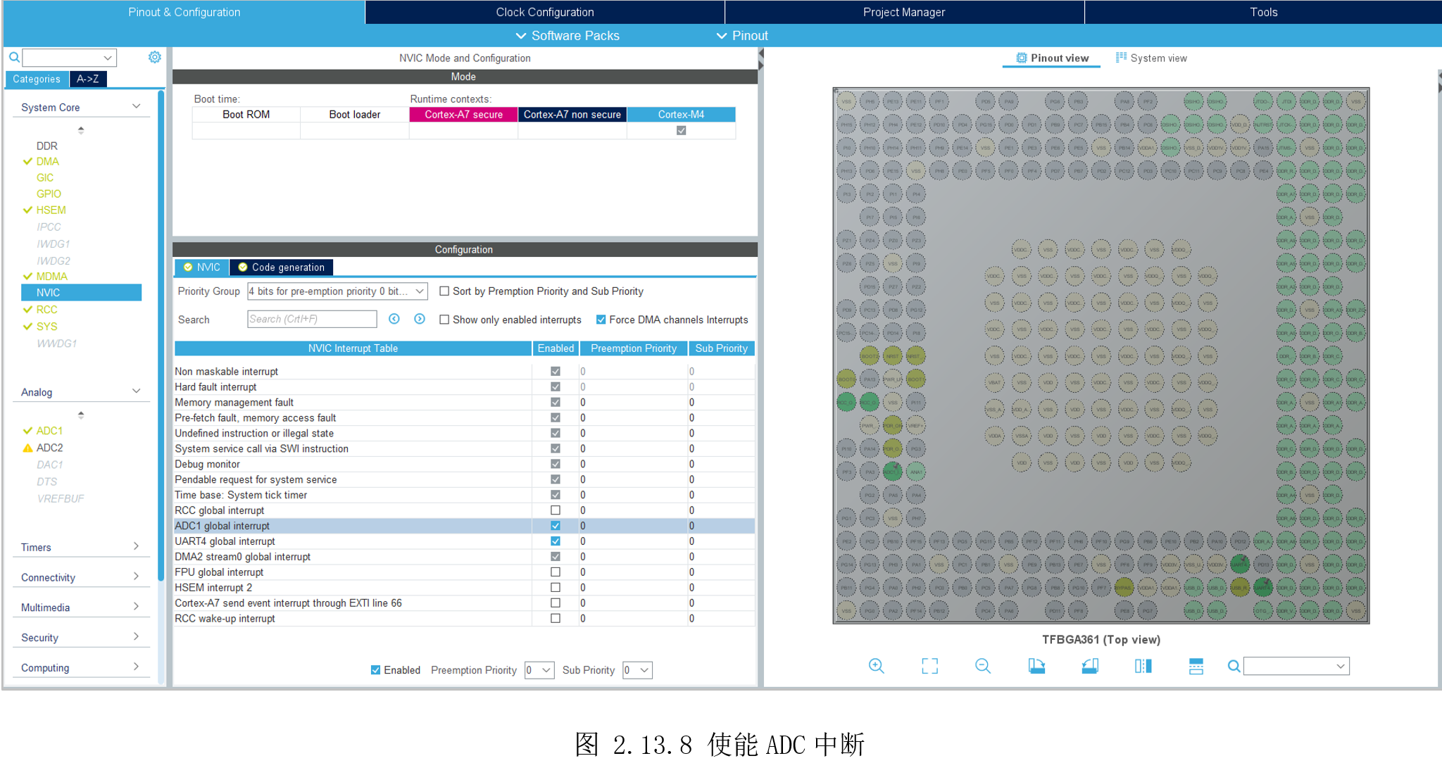最后勾选上ADC中断使能,这样就能通过中断得知转换完成,如图 2.13.8所示。