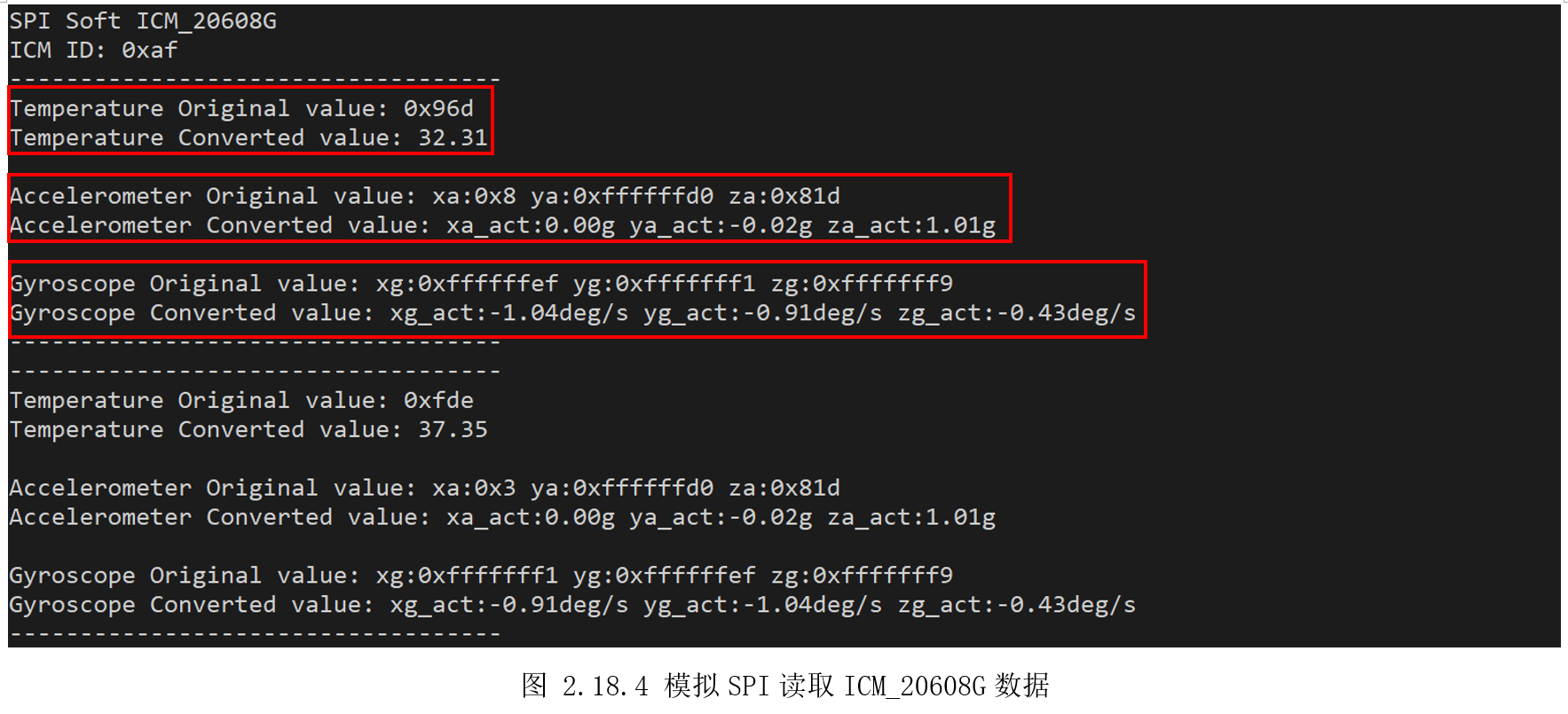 最后主函数调用“ICM_ReadGyroAccel()”打印结果。